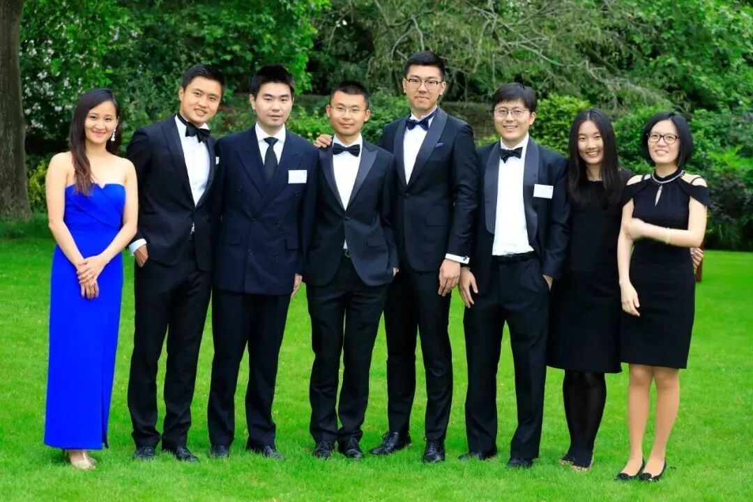 侯逸凡 (Hóu Yìfán) (first from right) at the Going Down Dinner Friday, June 21, 2019 at Rhodes House, University of Oxford, Oxford, England. Photo: Rhodes Trust.
